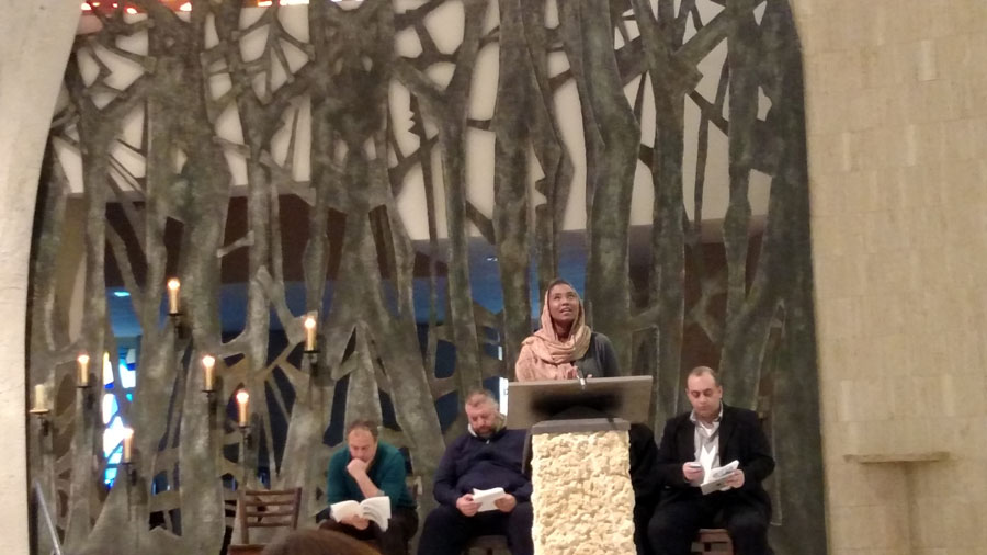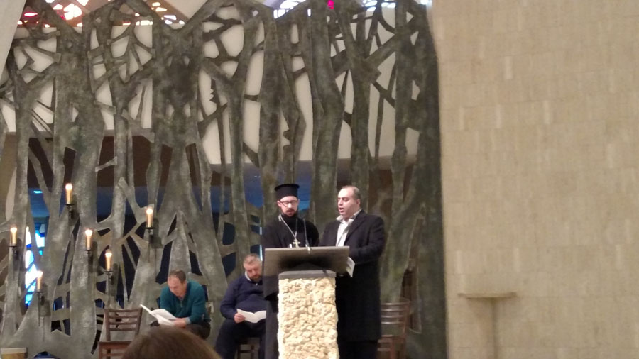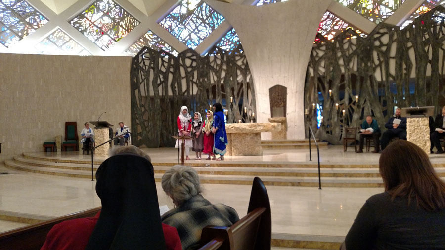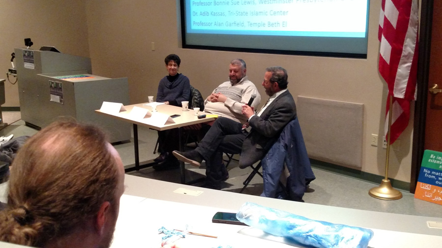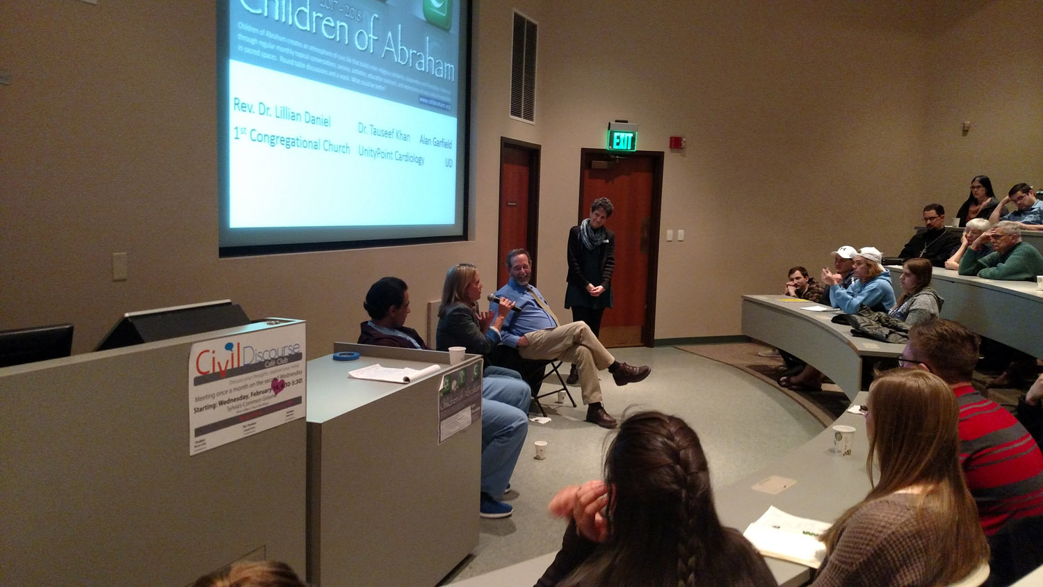 Pictures from our 03-22-18 conversation at the University of Dubuque. Hosted by Prof Bonnie Sue Lewis with presentations by Dr. Tauseef Kahn, Rev. Lilian Daniel and Prof Alan Garfield. Great conversation after the presentations between the audience and the panelists as well as between the panelists themselves. Pictures from our 02-22-18 Scripture conversation at Emmaus Bible College. Hosted by Ben Brown with presentations by Professor and Alan Garfield. Warm, beautiful hospitality. Pictures from our 10-12-17 Sukkot celebration, dinner and Jewish Scripture Study. Everyone came together at 5pm to build the Sukkah. There was a short service and then we went to the Temple Beth El Social Hall where Phyllis Garfield had prepared a meal for 40 (there were over 70). Then from 7-8:15pm the Scripture Study was from Ecclesiastes (Kohelet in Hebrew) - the traditional reading for Sukkot. Kate Scheinman, Becca Gottlieb and Alan Garfield interpreted Chapters 1 and 3 from a Jewish tradition, Rev. Stephanie Schlimm interpreted from a Christian standpoint (Epworth United Methodist Church) and Dr. Tauseef Khan related the piece to Islam and the Koran. About 150 people and...no food left. A great time. Pictures from our 09-14-17 beginning-of-the-year event. On the microphone were: Alan Garfield (Jewish), Adib Kassas (Muslim), and Fr. Dustin Lyon (Greek Orthodox) giving perspectives on the essences of their religions. In addition, a bibliography of further reading was distributed. Not many pics; but a great time at Loras College. Pictures from our 04-20-17 event. Craig Nessan, Dean at Wartburg Seminary, moderated this scripture study. Led by Adib Kassas with Surah 24 Alnur, the respondants were Ben Brown from a Christian perspective and Alan Garfield from a Jewish perspective. Our last conversation of the season indeed a lively discussion. Pictures from our 03-23-17 event. John Eby moderated (and contributed) as our three original members of the Children of Abraham, Bonnie Sue Lewis from Westminster Presbyterean Church, Adib Kassas from Tri-State Islamic Center, and Alan Garfield from Temple Beth El, talked about the impact of interfaith on them and their lives. This was definitely NOT a session to have missed. There were over 150 who packed Hadley Auditorium at the University of Dubuque (with others sitting on the stairs and aisles). Pictures from our 02-15-17 event. Meryem Oahbi moderated our three speakers, Adrian Letz, Tauseef Khan and Kate Scheinman. The topic was Life Ethic and each speaker focused on a different issue in that broad subject. The crowd was over 100 persons and it was an amazing night. Pictures from our 10-20-16 event. At our Board Meeting, we decided to hold off on our Festival Hospitality celebration this year. But since Sukkot fell on our scheduled conversation time and the conversation was about Ecology and Faith, it was a natural to do all three events: Sukkot Celebration, Dinner and Ecology and Faith conversation. We had c. 100 persons. Our chefs were Phyllis Garfield, Fern Reinstein and Cindy Pearce, from Temple Beth El. Our participants were Kate Scheinman from Temple Beth El (Jewish), Eric Anglada from Sinsinawa Mounds (Catholic), and Adib Kassas (Muslim), hosted by Alan Garfield from Temple Beth El. It was a fabulous night, 3-in-1. It is hard, in words, to describe the positive, life-affirming feeling in the sanctuary that night. Maybe the pics can help show that feeling. Pictures from our 4-10-16 Festivals series. This occurred on Sunday, at 7pm. In attendance for this special Greek Pan-Orthodox Vespers Service were Fr. Peter Andronache, Fr. Fred Shaheen, Fr. Germogen Tucker, Fr. Ignatius Valentine and Fr. Dustin Lyon. Pictures from our 2-18-16 conversation at the Tri-State Islamic Center. Speaking were Tauseef Khan, Sammy Eckrich and Phyllis Garfield. Great evening. The topic was - Coming of Age: How We Transition for Child to Adult in Catholicism, Judaism and Islam. Pictures from our 1-31-16 special celebration at Sinsinawa Mounds, thanks to the hospitality and generosity of the Dominican Sisters, on Sunday at 3pm. Huge event on a warm and brilliant Sunday afternoon. Thanks to Fr. Dustin Lyon for organizing this joint chant and fellowship together. Pictures from our 1-28-16 event on Torah study at Clarke University. The subject was Shabbat. Pictures from our 12-1 and 12-3 2015 event. Jerusalem 3D Film at the National Mississippi River Museum and Aquarium. Sponsored by the Wendt Center for Character Initiative at the University of Dubuque, DACU (Dubuque Area Congregations United) and the Kucera Center for Catholic Studies at Loras College. Both shows were SRO, with 130 per night. Pictures from our 11-19-15 conversation. The topic was the Purpose of Life and we heard from Dalia abdul Rahim, Sr. Pat Conlon, Jonas Meyer, Alan Garfield and Chaminda Prelis. The Temple was packed. Our usual number of 50-70 people grew to over 180. It was standing room only. Thanks to Phyllis Garfield and Cindy Pearce for organizing the food for everyone. It was a very long night, the last folks leaving around 11pm. Pictures from our 10-24-15 event. Festival Hospitality. Tri-State Islamic Center. 10th of Muharram. This was an offering of hospitality to the Muslim community recognizing the Israelite’s freedom from Pharaoh. We had fellowship, prayers, and a feast. We gathered at 6:00 p.m. and break-the-fast started at 6:30pm. Pictures from our 10-15-15 Conversation. Wartburg Seminary. Focus was on a scripture in the Qur'an. Thanks, Sami, for the great photos and thanks, Craig, for the hospitality. Pictures from our 9-29-15 event. Festival Hospitality. Sukkot at Temple Beth El. Building, decorating, praying at the Sukkah and then eating at Temple Beth El. Thanks to Phyllis Garfield and Fern Reinstein for organizing the meal. About 75 in attendance. Pictures from our 9-27-15 event. Needless Victims: Against Gun Violence March and Rally at University of Dubuque with Alan Garfield, David Cochran, Matt Z