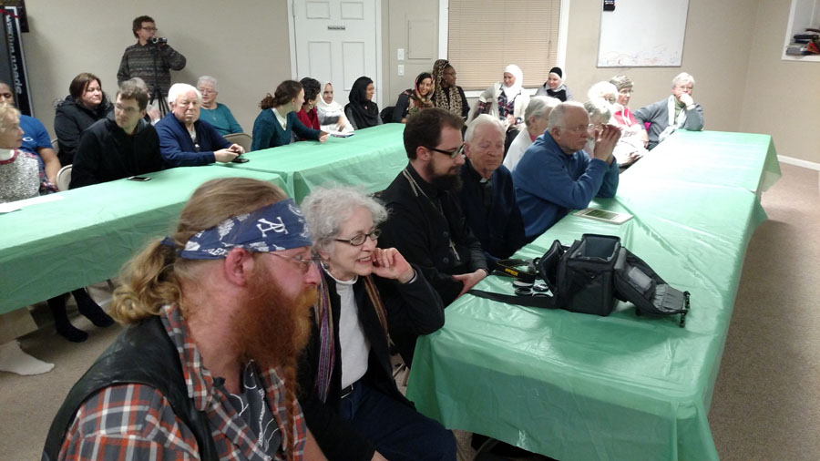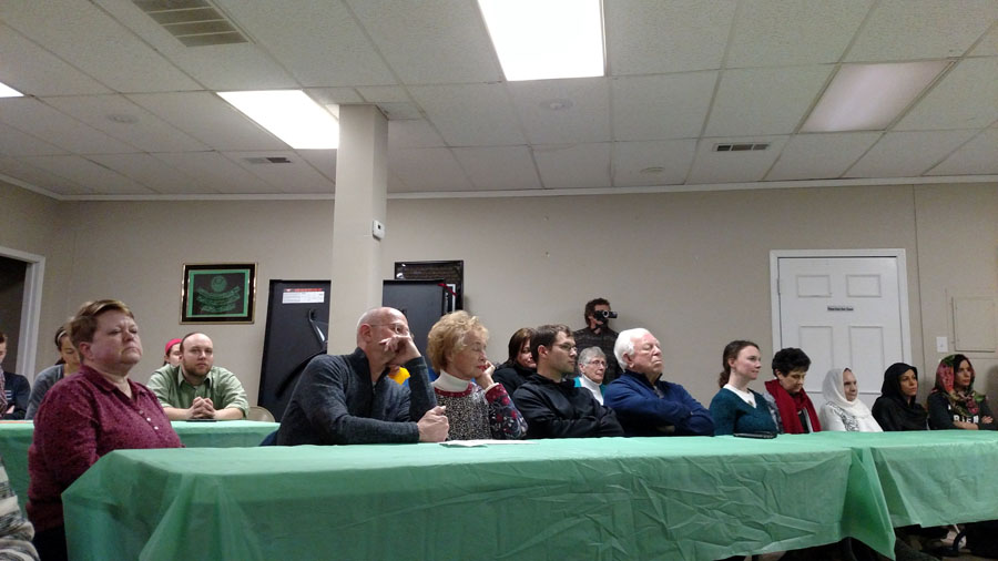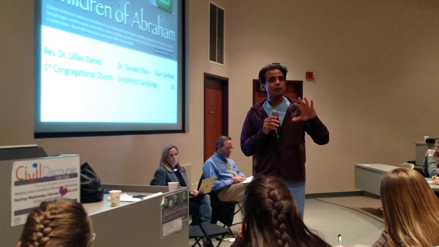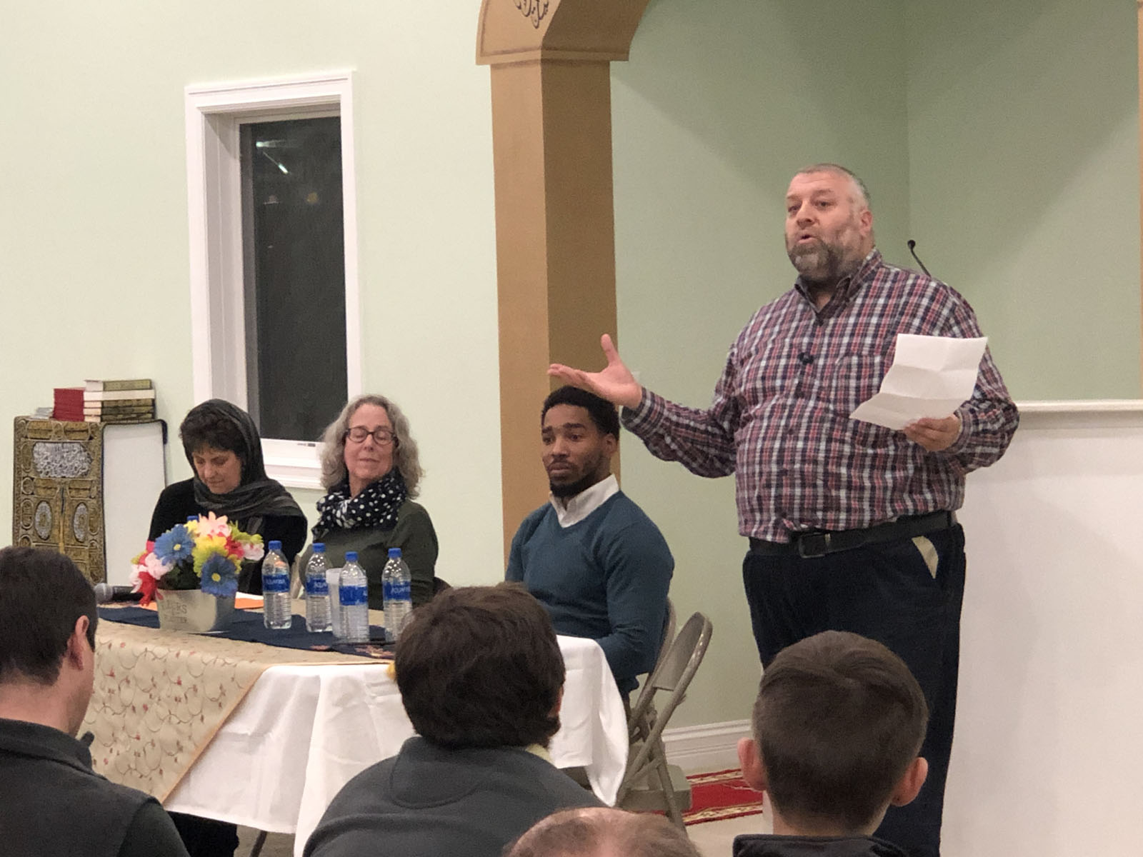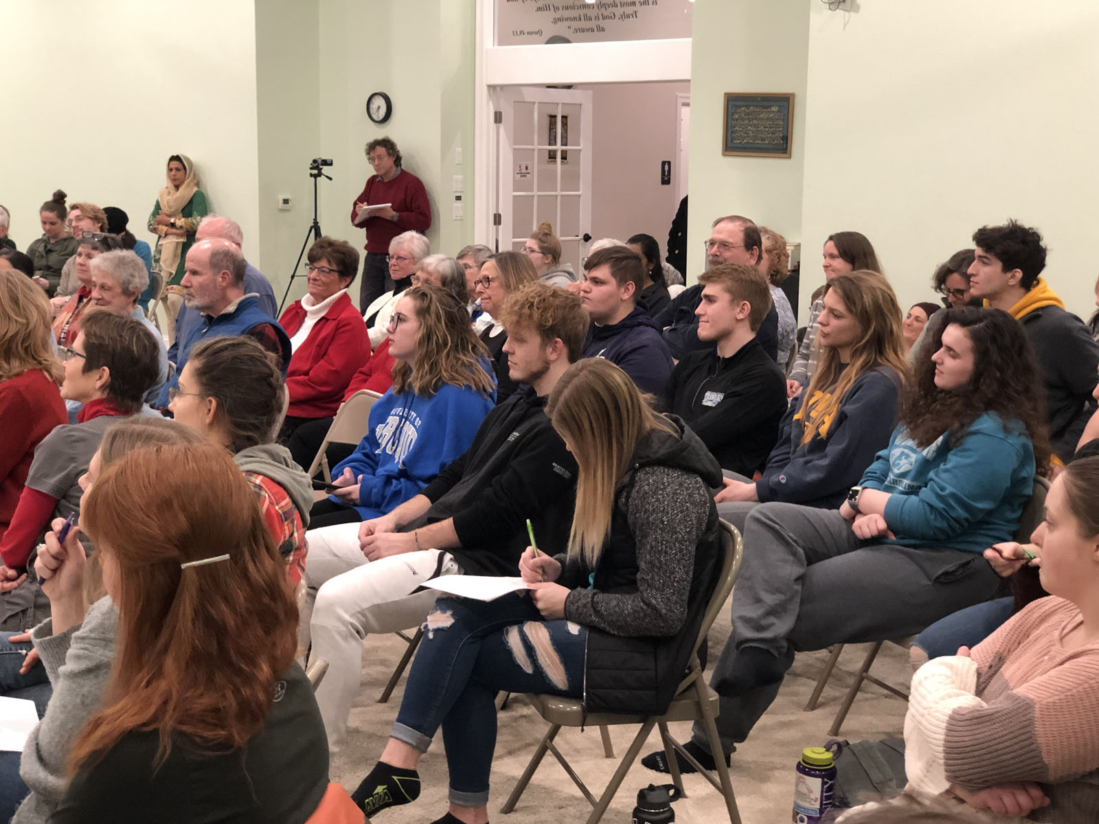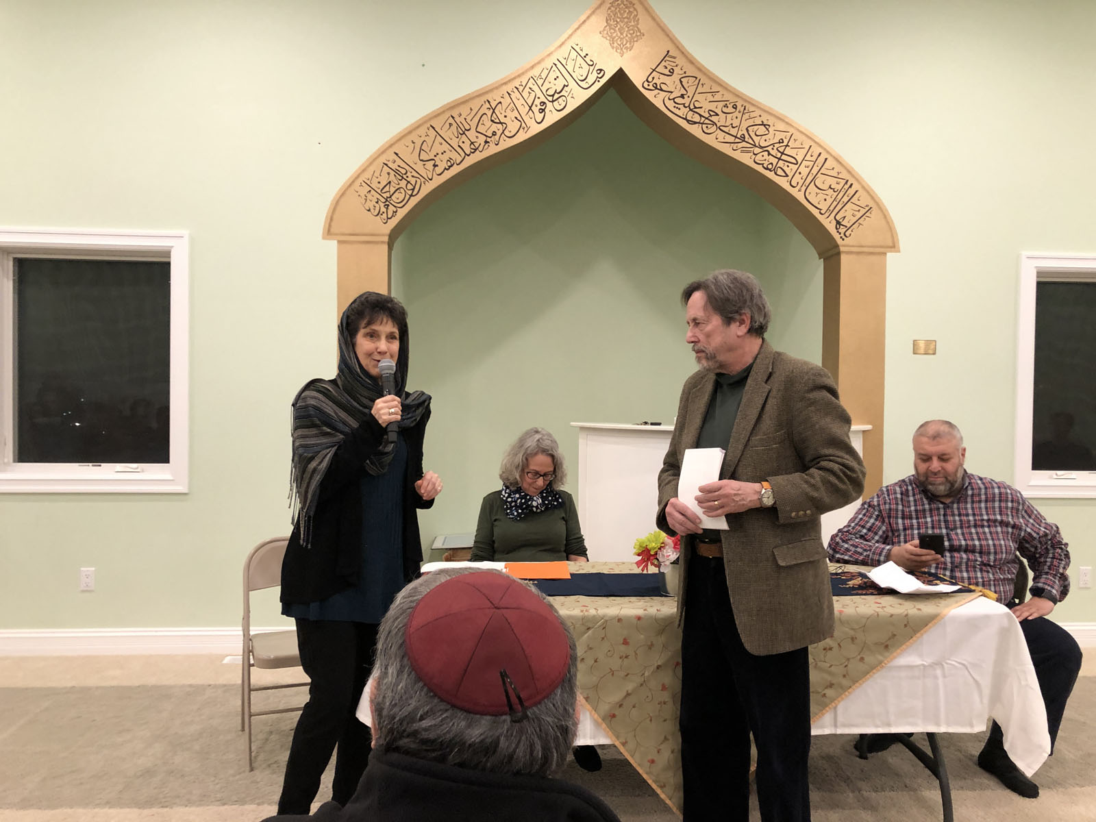 Pictures from our 02-20-20 conversation at the Tri States Islamic Center (the Mosque) in Dubuque. Hosted by Bonnie Sue Lewis, presenters were Kate Scheinman, Anderson Sainci, and Adib Kassas. All the seats were filled and the overflow was on the floor. Special guests this night included Prof Chuck Cohen (whose book we'll use for our Spring book group) from Madison and Rabbi Emeritus Henry Karp, Cantor Gail Karp, and Imam Qasim Siddiqui from Davenport. A lively event with warm hospitality.