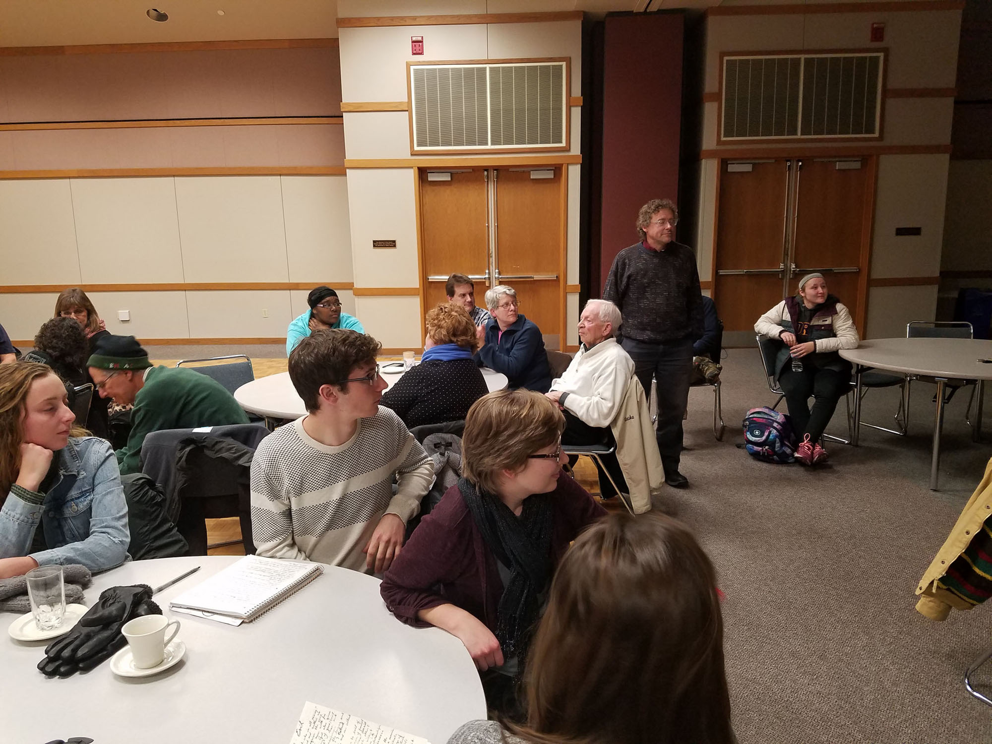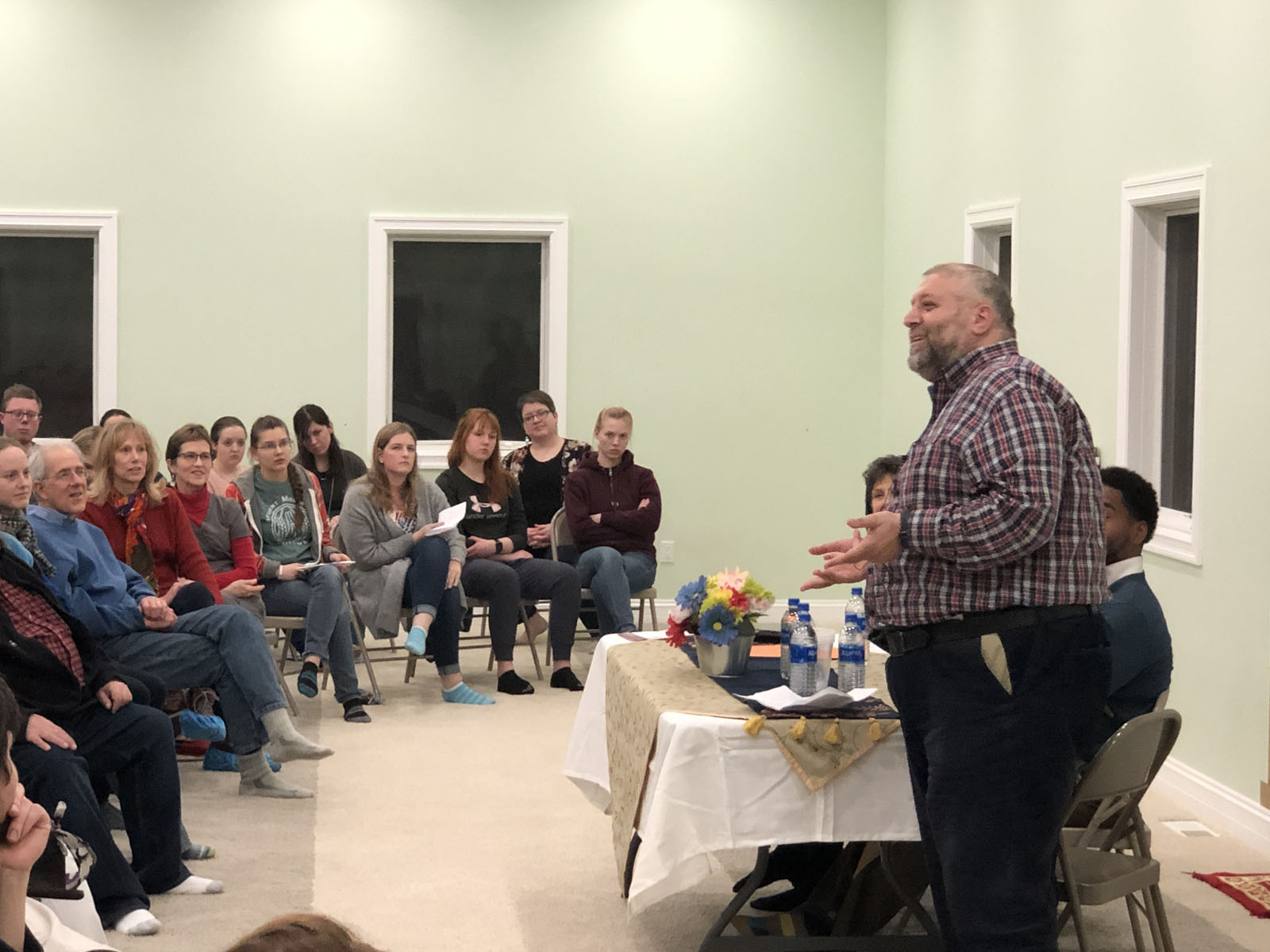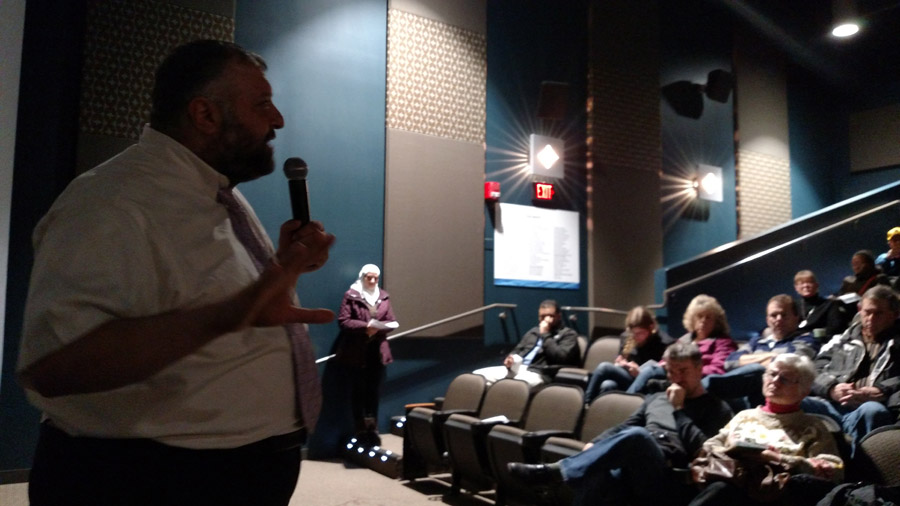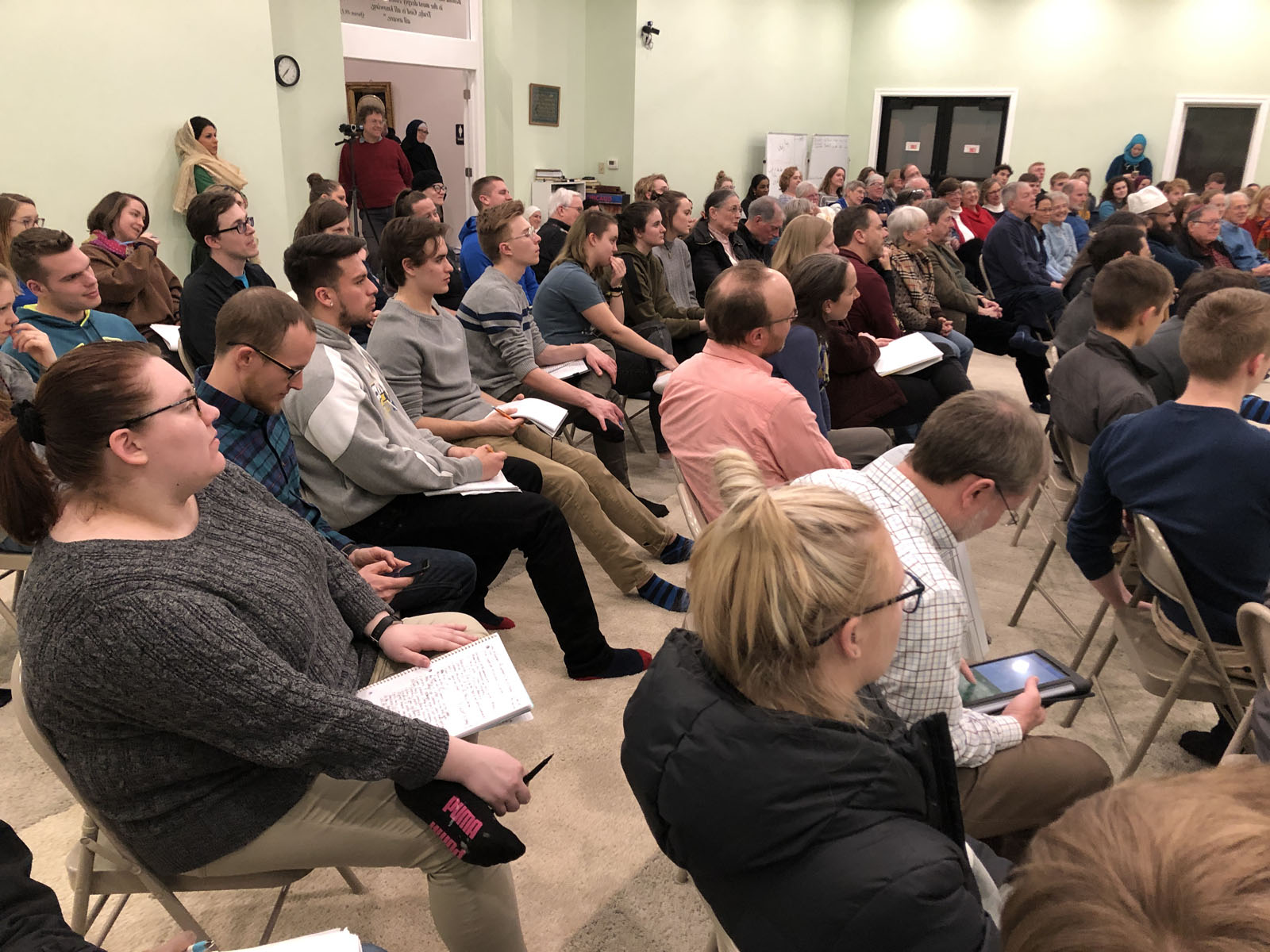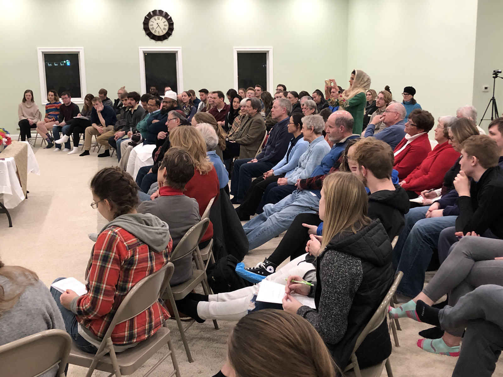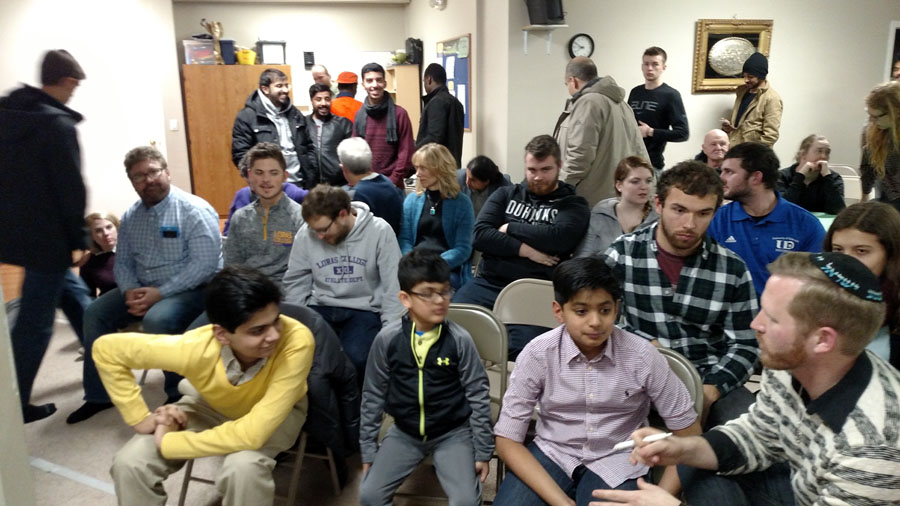Pictures from our 02-20-20 conversation at the Tri States Islamic Center (the Mosque) in Dubuque. Hosted by Bonnie Sue Lewis, presenters were Kate Scheinman, Anderson Sainci, and Adib Kassas. All the seats were filled and the overflow was on the floor. Special guests this night included Prof Chuck Cohen (whose book we'll use for our Spring book group) from Madison and Rabbi Emeritus Henry Karp, Cantor Gail Karp, and Imam Qasim Siddiqui from Davenport. A lively event with warm hospitality.