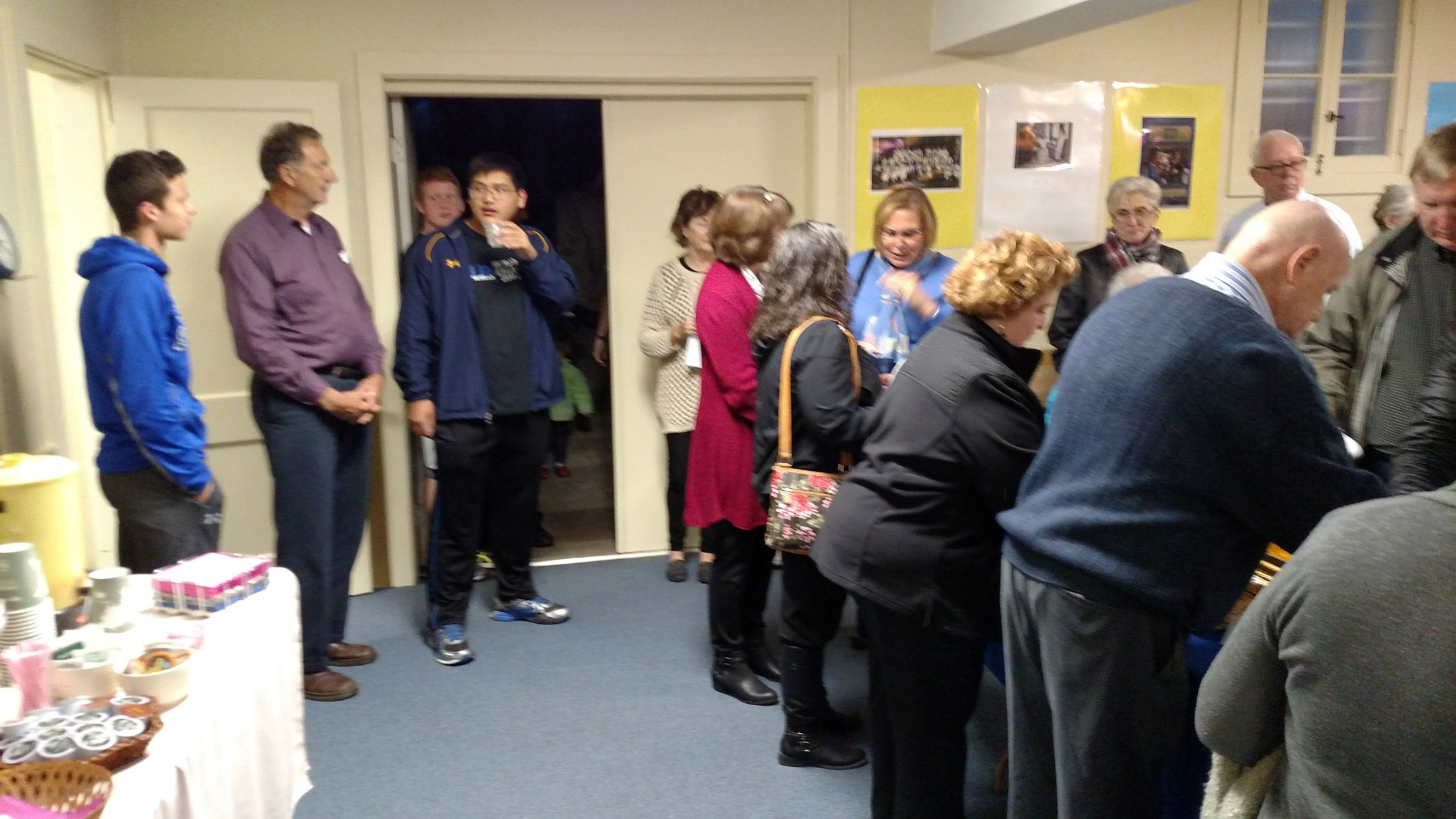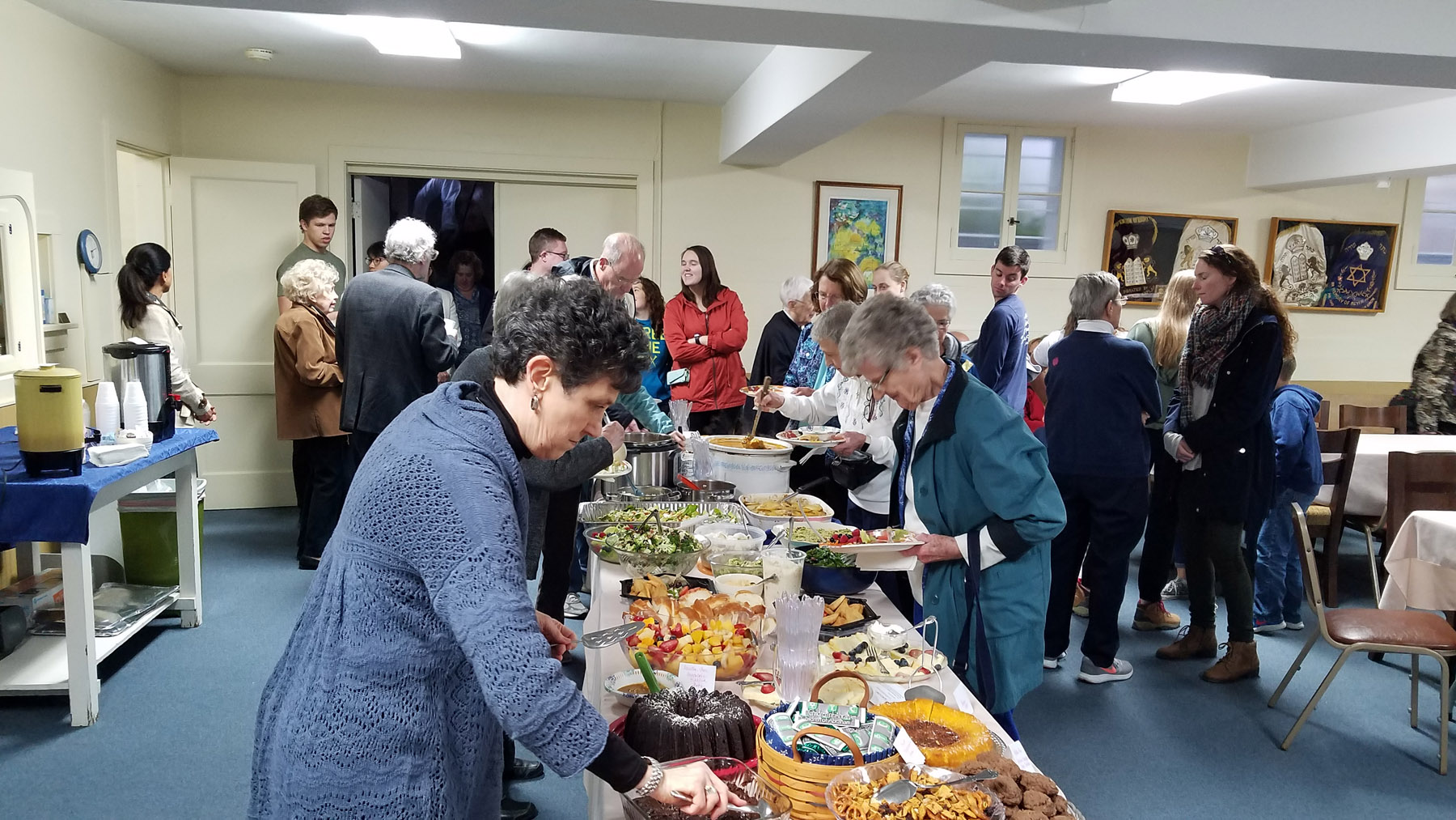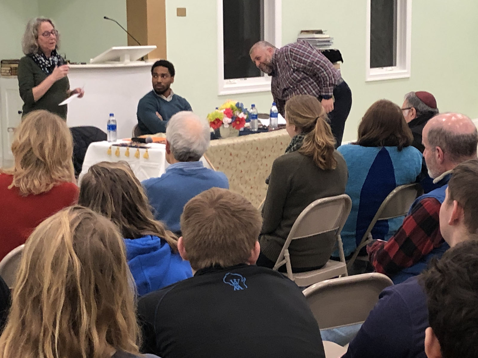 Pictures from our 10-17-19 conversation at Temple Beth El. This was a combination build the Sukkah, service in the Sukkah, dinner in the social hall and conversation. About 90 came for the Sukkah and dinner; 147 were in the Sanctuary for the conversation. Wow. This was a festival of hospitality - CoA folks brought a dish to share in addition to the food prepared by Phyllis Garfield, Ellie Landau and Fern Reinstein. We're not used to seeing our little congregation so packed. Thank you presenters Tauseef Khan, Kerry Brown, Christina Edwards and Kate Scheinman. Topic: Food in your tradition. Participation from a Muslim, Christian/Protestant, Church of Jesus Christ of Latter Day Saints and Jewish perspective.