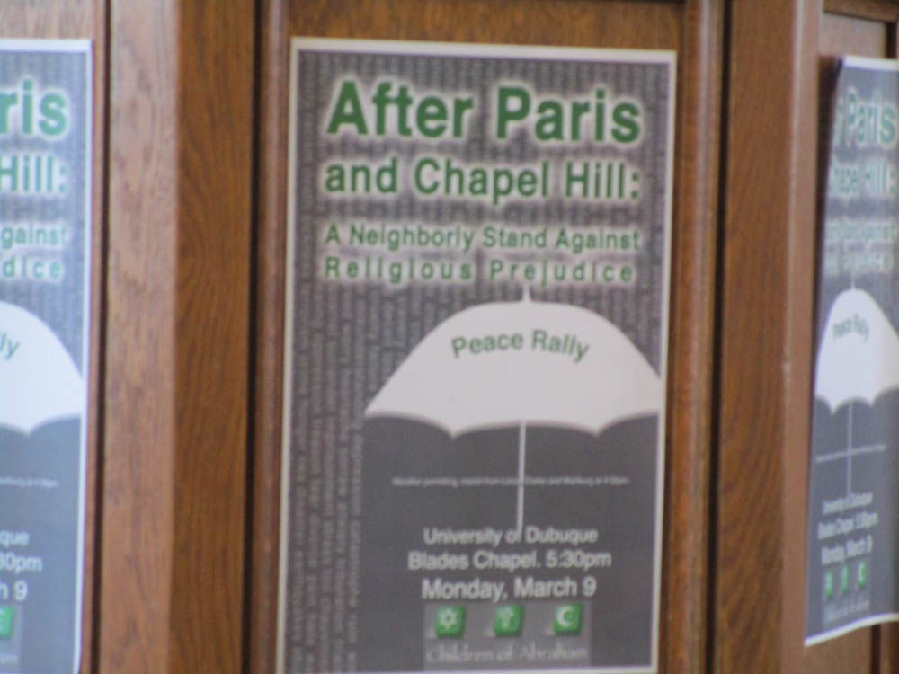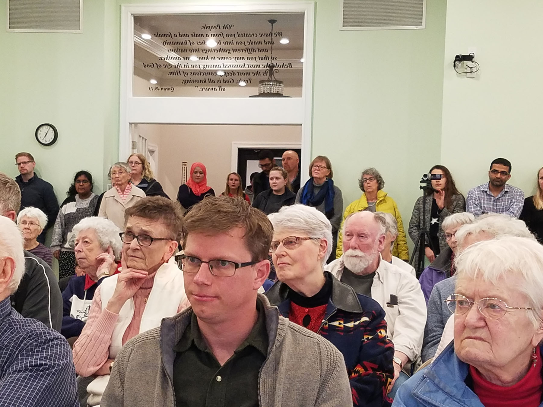 Pictures from our 03-21-19 conversation at the University of Dubuque. Our topic was two-fold: Memorial for the Christchurch, New Zealand Mosque Shootings on Friday, March 15, 2019 and On Death and Dying. Presenters were Mrs. Tania Khan, Dr. Adib Kassas, Dr. Rami al-Tibi, Prof Alan Garfield, Rev Ed Moreano, Mr. Jody Dernin and Prof John Eby. Over 275 persons over-filled the Mosque.